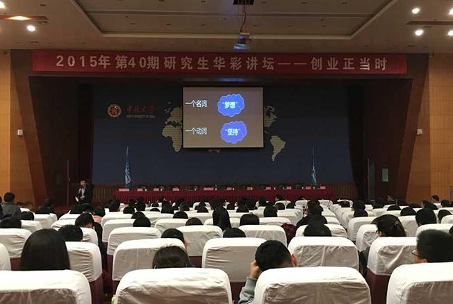 谭慷博士通过对自己经验的介绍,总结了创业的精髓在于创业者应富有“梦想”和“坚持”。并系统的阐述了创业所需要的条件,创业者必须具备的潜质以及创业过程中所呈现的各项重要特点。同时,谭慷博士还提出创业者在当下环境条件下要侧重于“精益创业”,鼓励大家要富于创业的梦想与实践的勇气。随后,与会的十数位各领域的杰出创业代表们为大家讲解他们各自的创业过程与经验,开阔了学生们的视野。最后,各位杰出代表们与学生们进行了精彩的互动,使得学生们得到了许多有关创业方面的知识。